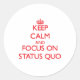 Keep Calm and focus on Status Quo Classic Round Sticker