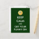Our KEEP CALM And Get Your FUNNY On Postcard is perfect for sending a quick pick-me-up greeting to friends and family. How about sending a monthly joke to keep in touch? Customise by choosing the background colour of your choice. And add you personalised greeting on the back (no extra charge). Volume discounts available!