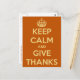 Keep Calm and Give Thanks Orange Postcard