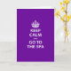 Our take on the classic WWII poster reminding the English to keep calm and carry on during the Blitz, we simply say, "Keep calm and go to the spa"! Relax, rejuvenate, and have a laugh while you get a massage or salon treatment! Makes a great gift for your salon customers or your massage therapist. In crisp white so you can place it on any background colour. Play around with all the colours!