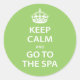 Our take on the classic WWII poster reminding the English to keep calm and carry on during the Blitz, we simply say, "Keep calm and go to the spa"! Relax, rejuvenate, and have a laugh while you get a massage or salon treatment! Makes a great gift for your salon customers or your massage therapist. In crisp white so you can place it on any background colour. Play around with all the colours!