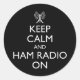 Keep Calm And Ham Radio On. Funny Amateur Ham Radio accessory would be a great gift for a hobbyist ham radio operator to wear in their ham shack. Do you love to operate shortwave & ham radios as a hobby? Do you have an antenna on your roof or backyard? Do you know all the best frequencies? Then this design is for you! Has a graphic of a broadcasting radio tower.