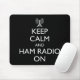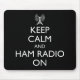 Keep Calm And Ham Radio On. Funny Amateur Ham Radio accessory would be a great gift for a hobbyist ham radio operator to wear in their ham shack. Do you love to operate shortwave & ham radios as a hobby? Do you have an antenna on your roof or backyard? Do you know all the best frequencies? Then this design is for you! Has a graphic of a broadcasting radio tower.