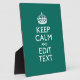 Your festive personalised Keep Calm saying on a fine custom style teal turquoise accent decor gift. A personalised Keep Calm style saying. Humourous or whimsical try on your creative words on two editable lines of text. Remember to use CAPITAL letters for best results.