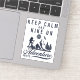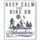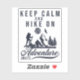 This Sticker is perfect for a hiking enthusiast. Show how much you love hiking by decorating your car, computer, water bottle etc. with this fun sticker. The design features the words "Keep Calm And Hike On", and "Adventure Awaits" with a silhouette of a hiker, mountain, trees, sun, bird and grass between the words. This will make a great gift for a hiker. Design made in Kittl.