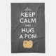 Fluffy Pomeranian Kitchen Towel. This cute Pommie dish towel makes a perfect Pom lover's gift. Pom moms and Pom dads know that the most effective way to keep calm is to hug a Pom. Visit Jenn's Doodle World for more products featuring this Keep Calm and Hug a Pom design and more fun art for dog lovers.