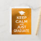 A postcard featuring keep calm and just graduate slogan, a variation of the famous keep calm and carry on slogan