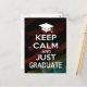 A postcard featuring keep calm and just graduate slogan, a variation of the famous keep calm and carry on slogan