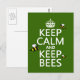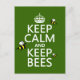 This reads Keep Calm and Keep Bees. Cartoon bees buzz alongside the words. It's a beautiful design, really popular with anyone interested in beekeeping and bee conservation.