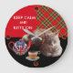 KEEP CALM AND KITTY ON ,RED TARTAN TEA PARTY LARGE CLOCK