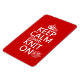 This reads Keep Calm and Knit On, in the style of the classic keep calm poster. There are balls of yarn and knitting needles nestling among the words. It's a beautiful design, which will please anyone who loves to knit. It makes a great range of presents for knitters, and home furnishings for crafting / sewing rooms.