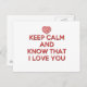 Keep Calm and Know That I Love You Postcard