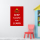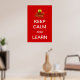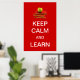 This poster features a red background, with an image of three red books and a green apple, above white text that reads, "Keep Calm and Learn". Perfect for a school or teacher!