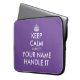 Keep calm and let handle it funny neoprene laptop sleeve. Custom protection cover for your computer. Purple or custom colour. Fun Birthday gift idea for mum, dad, husband, wife, coworker, boss, colleague, school teacher, business coach etc. Modern typography template with crown.