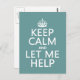 Keep Calm and Let Me Help (customisable colours) Postcard