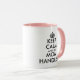 Keep calm and let mum handle it funny Mother's Day Coffee Mug. Make your own funny Keep Calm and Carry On parody for women. Modern typography template with crown. Double sided print. Combo colour cup with pink handle and inside. Custom design with text and crown in any colour.