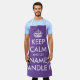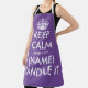 Keep calm and let (name) handle it funny purple BBQ apron for men and women. Vintage typography template with crown. Personalised kitchen cooking aprons in any colour. Trendy template with big letter typography design. Add your own name or humourous quote. Create your own one of a kind Birthday party gift for grill master, mum, dad, sister, brother, father, mother, wife, husband, friend, uncle, aunt, boyfriend, girlfriend, grandma, grandpa, kids, boss, co worker, chef, cook, colleague, coach, teacher, nurse, wedding couple etc. Available in small, medium and large size. Also great for dinner party, baking, dish washing, art & crafts work etc. Make a his and hers for him and her. Humour presents for friends and family.