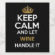 Keep Calm and let wine or editable name handle it humour meme with a two-tone golden coloured crown and name in golden yellow sans font lettering. Use the templates to personalise with the name of your choice.