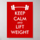 Keep calm and lift weight poster for weighlifters. Make your own Keep calm and carry on design parody. Funny weightlifting quote with barbell logo. Cool gift for weightlifter, bodybuilder or fitness instructor. Gym decoration.