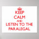 Keep Calm and Listen to the Paralegal Poster