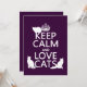 This reads Keep Calm and Love Cats. Silhouettes of cats sit on and beside the letters. It's a beautiful design, great for anyone who loves cats, or who works with cats.