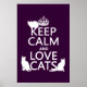 This reads Keep Calm and Love Cats. Silhouettes of cats sit on and beside the letters. It's a beautiful design, great for anyone who loves cats, or who works with cats.