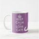 Keep calm and love cats mug. Create your own funny Keep Calm and Carry On parody. Simply edit the text of this template to make a unique design. Personalised mugs are a great gift idea for friends and family.