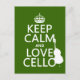 This reads Keep Calm and Love Cello, in the style of the classic keep calm poster. The silhouette of a cello rests against the words. It's a beautiful simple design, perfect for anyone who loves the cello.