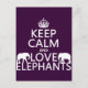 Keep Calm and Love Elephants (any colour) Postcard