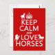 The design reads Keep Calm and Love Horses, in the style of the classic keep calm poster. There are silhouettes of horses running on and beside the words, giving a great sense of movement. It's a beautiful happy design, which is loved by horse lovers of all ages. It makes a beautiful range of products, perfect as gifts and thank yous to stable owners, riding teachers and anyone who loves horses.