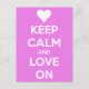 Keep Calm and Love On Pink Postcard