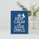 The design reads Keep Calm and Love Owls, in the style of the classic poster. There is a beautiful wise owl sitting on the words. It's a stylish design which makes a great range of presents for anyone who loves or works with owls.
