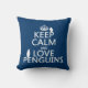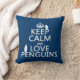 The design reads Keep Calm and Love Penguins, in the style of the classic poster. There are silhouettes of penguins standing happily on the letters. It's a stylish design, which makes great products for anyone who loves penguins.