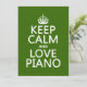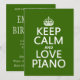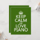 This reads Keep Calm and Love Piano, in the style of the classic keep calm poster. It's a lovely clean design, perfect for pianists, and gifts or thank yous for piano teachers.