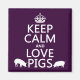 The design reads Keep Calm and Love Pigs, in the style of the classic poster. There are silhouettes of two little pigs beside the words. It's a popular design, which makes great products for anyone who really loves pigs.