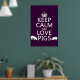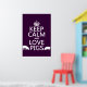 The design reads Keep Calm and Love Pigs, in the style of the classic poster. There are silhouettes of two little pigs beside the words. It's a popular design, which makes great products for anyone who really loves pigs.
