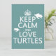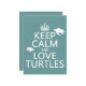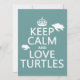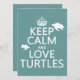 This reads Keep Calm and Love Turtles. Two silhouette turtles swim beside the letters. It's a clean and beautiful design, perfect for anyone you know who just loves turtles.