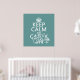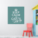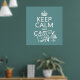 This reads Keep Calm and Make a Cake, in the style of the classic keep calm poster. The final words have been added as though on a sticker or a stamp over the original. There is a grand looking cake standing by the words. It's a fun and beautiful design, with a sense of decadence. Perfect for any tea room or bakery, and a lovely gift for anyone who loves cake.