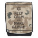 Text reading "KEEP CALM AND MAKE ALIYAH" superimposed on a desert camouflage background.