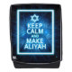 Glowing blue and white text reading "KEEP CALM AND MAKE ALIYAH." Aliyah (עלייה), meaning ascent, is the Hebrew word for immigration to Israel from the diaspora.  Aliyah is considered to be "going up" in the direction of Jerusalem.  What are you waiting for?