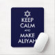 Features text reading "KEEP CALM AND MAKE ALIYAH." Aliyah (עלייה), meaning ascent, is the Hebrew word for immigration to Israel from the diaspora. Aliyah is considered to be "going up" in the direction of Jerusalem. What are you waiting for?