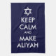 Features text reading "KEEP CALM AND MAKE ALIYAH." Aliyah (עלייה), meaning ascent, is the Hebrew word for immigration to Israel from the diaspora.  Aliyah is considered to be "going up" in the direction of Jerusalem.  What are you waiting for?