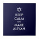 Features text reading "KEEP CALM AND MAKE ALIYAH." Aliyah (עלייה), meaning ascent, is the Hebrew word for immigration to Israel from the diaspora.  Aliyah is considered to be "going up" in the direction of Jerusalem.  What are you waiting for?
