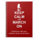 A new spin on the iconic British poster, this design features the famous "Keep Calm and..." phrase, but finishes it with "March On". The marching band reference is further enhanced with a graphic illustration of a shako - the iconic headwear of the marching arts. You can also personalise this unique notebook with your own message by using the easy, provided template.