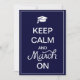 This design is based on the popular "Keep Calm and Carry On" with a graduation twist. A simple white frame gives it an elegant formal look. The background is blue but can be changed to a colour of your choosing. Click on the Customise It button, then go to Edit, then Background. A colour palette will appear. Once you've chosen your colour click on Done to save your changes. If you need a custom school colour please message me