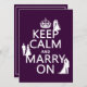 This is the classic war poster "Keep Calm and Carry On" reworded to "Keep Calm and Marry On". I've kept the traditional crown at the top and added the silhouettes of brides and grooms standing on the letters. It's a beautiful stylish design, with a little nostalgia. Makes beautiful cards and invitations or gifts for anyone's special day. (gay couple designs are also available in my store.).