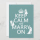 This is the classic war poster "Keep Calm and Carry On" reworded to "Keep Calm and Marry On". I've kept the traditional crown at the top and added the silhouettes of brides and grooms standing on the letters. It's a beautiful stylish design, with a little nostalgia. Makes beautiful cards and invitations or gifts for anyone's special day. (gay couple designs are also available in my store.).