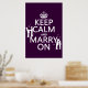 This is the classic war poster "Keep Calm and Carry On" reworded to "Keep Calm and Marry On". I've kept the traditional crown at the top and added the silhouettes of two men in top hats with love hearts around them. This design is perfect for gay wedding invitations, or just as a celebration of equal marriage. (There are designs in my store for f/f couples and f/m couples too).