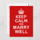 Keep Calm and Marry Well Postcard