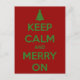 Keep Calm and Merry On Red and Green Holiday Postcard